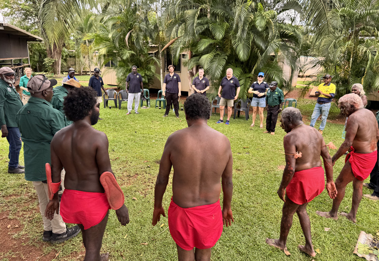 The Gumatj delegation arrived at Yapilika forestry camp on Melville Island, where they were welcomed by Tiwi Plantations Corporation (TPC) Chairman Kim Puruntatameri and members of the Munupi clan, Traditional Owners of the country on which the camp is located. A ceremonial welcome by Tiwi dancers set the tone for the visit, reaffirming cultural ties between the Tiwi and Yolngu peoples.